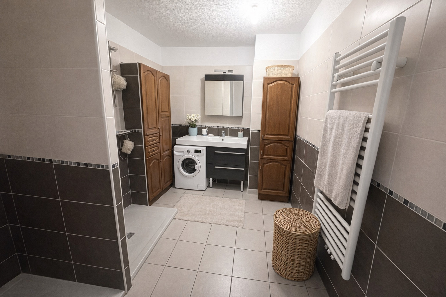 Il se compose d'un séjour avec cuisine ouverte aménagée et équipée , une chambre adaptée, une salle d’eau avec douche à l’italienne, une spacieuse terrasse. L'appartements est conçu pour faciliter le quotidien : volets roulants électriques, cuisine équipée, salle d’eau ergonomique et ascenseur.
