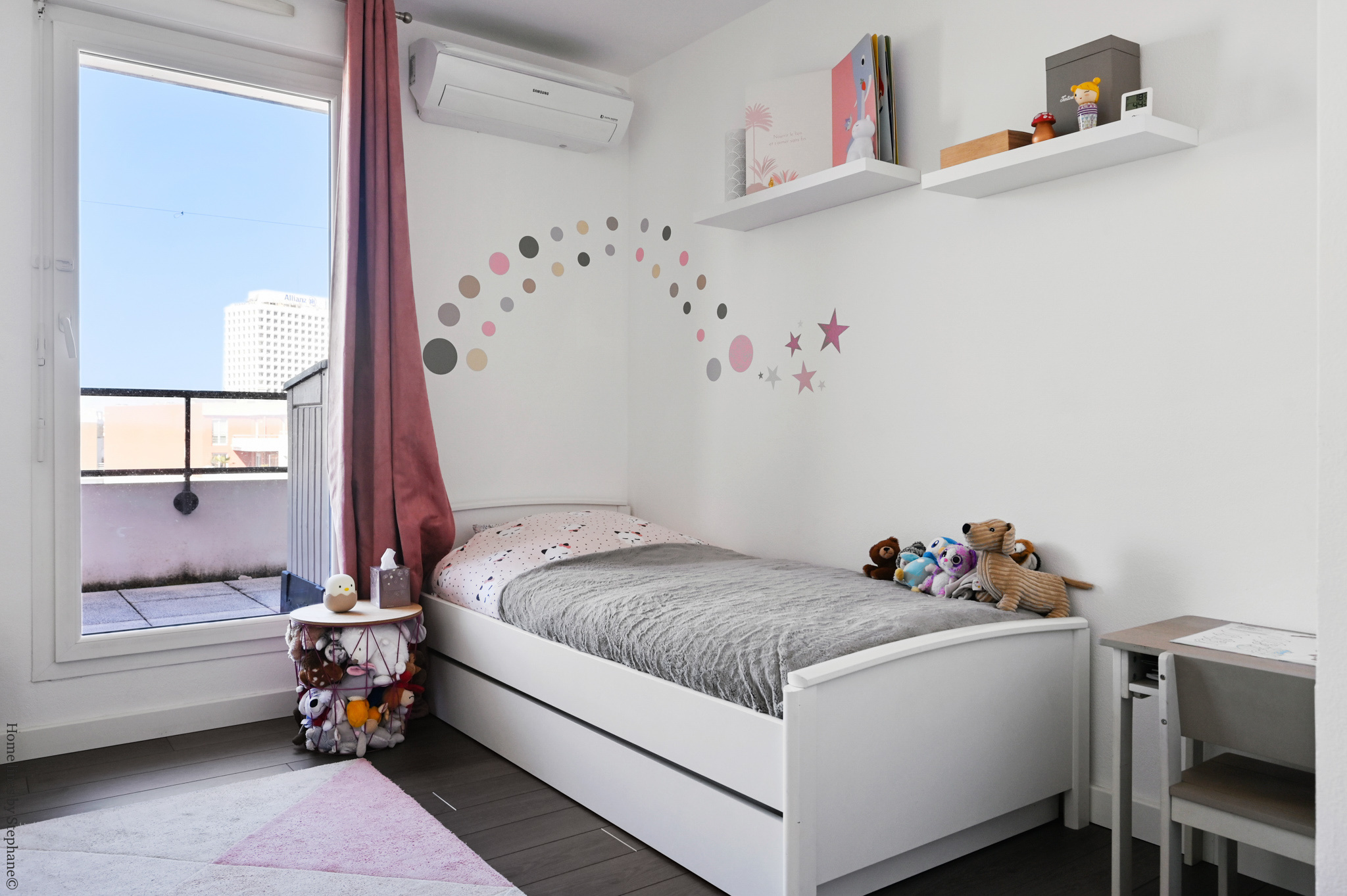 Chaque étage donnant par trois baies vitrées sur une terrasse de 17 m2 et 18 m2.