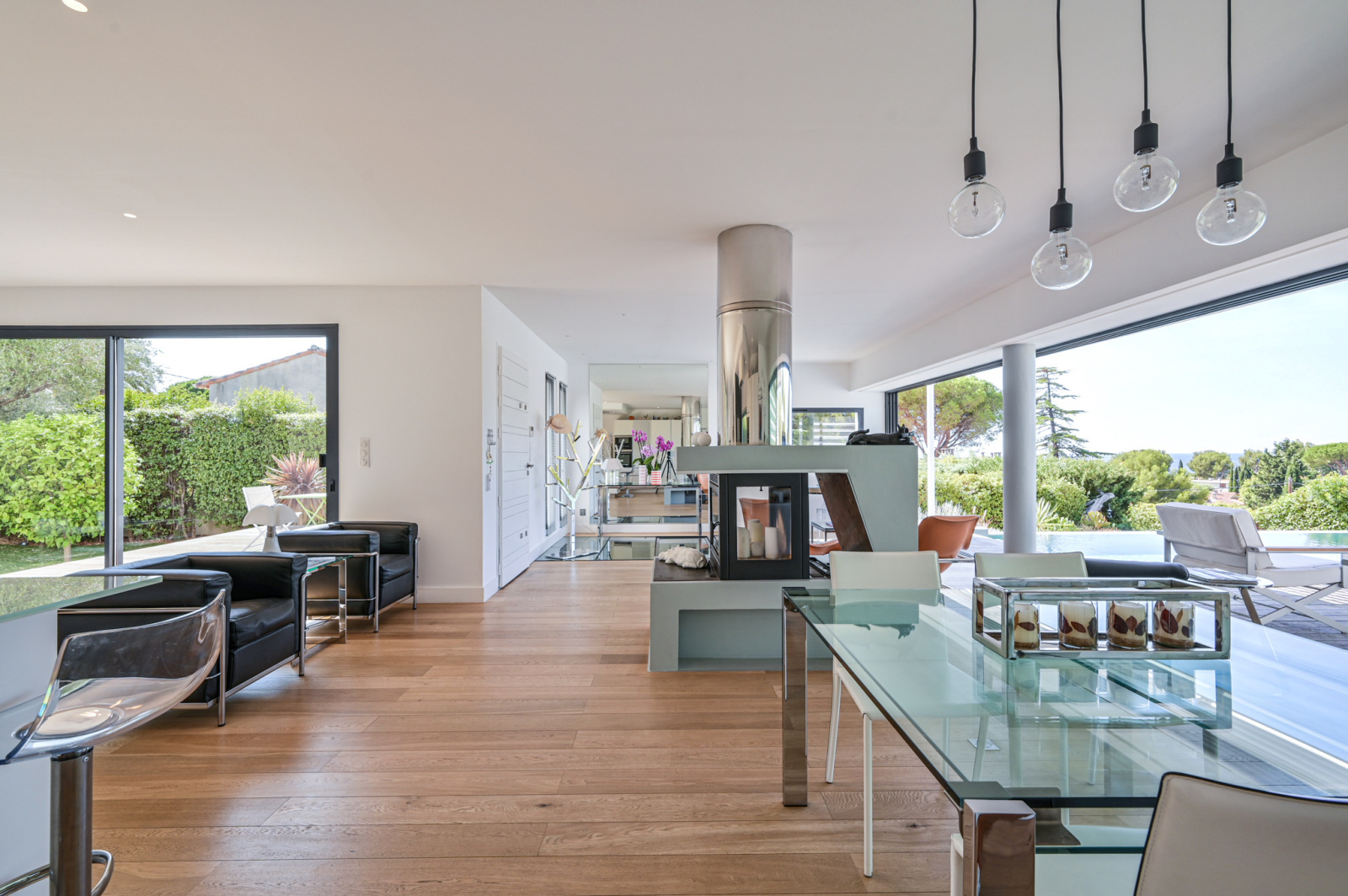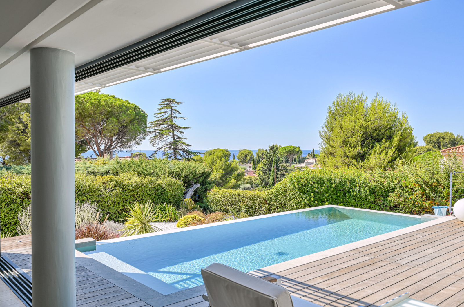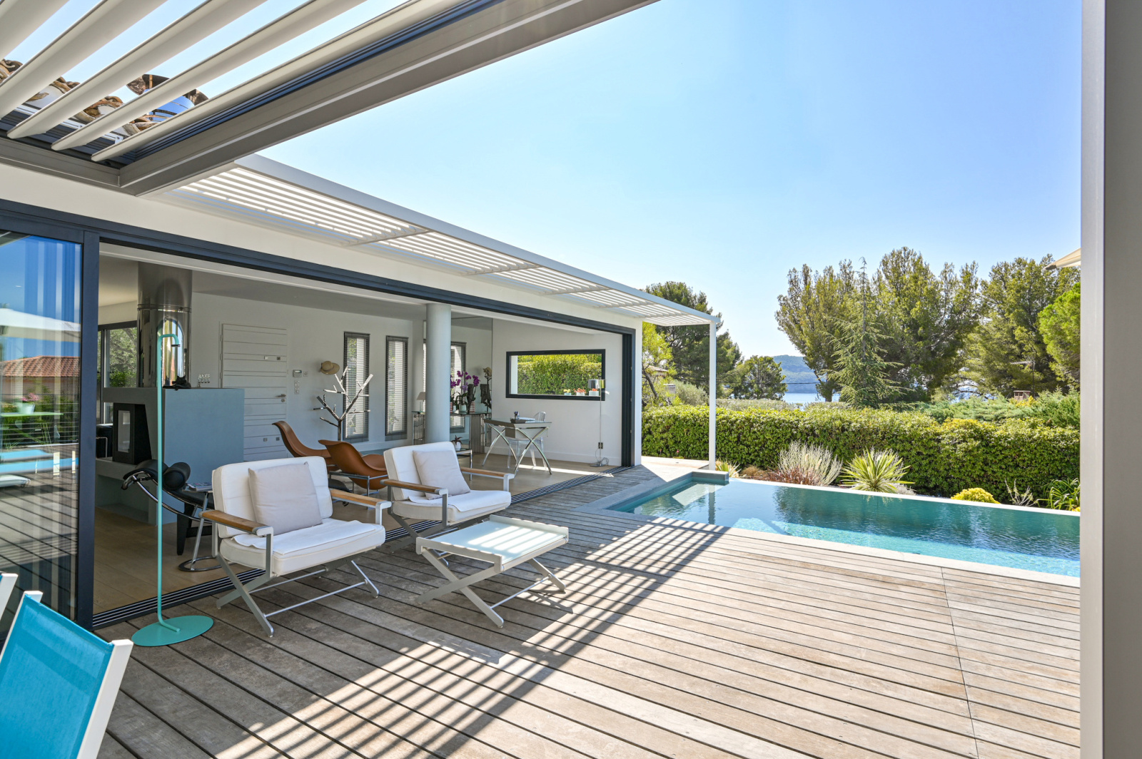 Ce bien a été VENDU par SIGA IMMOVAR En EXCLUSIVITE Quartier Les Lecques à proximité de la plage et des commerces, cette villa contemporaine de 185 m2 avec vue mer , dispose d'une vaste pièce de vie de 97 m2 aux larges ouvertures. . Baigné de lumière cet espace intègre une cuisine ouverte entièrement équipée et se prolonge de belles terrasses et d'une piscine à debordement.En complément, le rez-de-chaussée accueille une chambre avec sa salle d'eau , un wc séparé et une pièce de buanderie . A l'étage une suite vue mer de 35 m2 avec salle de bains, dressing et terrasse. Une troisième chambre avec salle d'eau, et un wc séparé. Terrain de 800 m2 environ joliment paysagé et necessitant peu d'entretien . Atelier piscine et carport . Classe energie: B MDT 3668 prix honoraires agence inclus à la charge du vendeur .