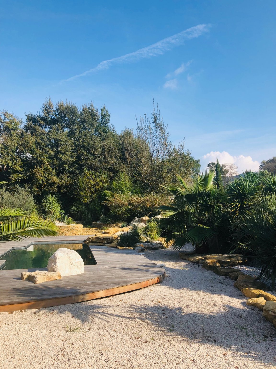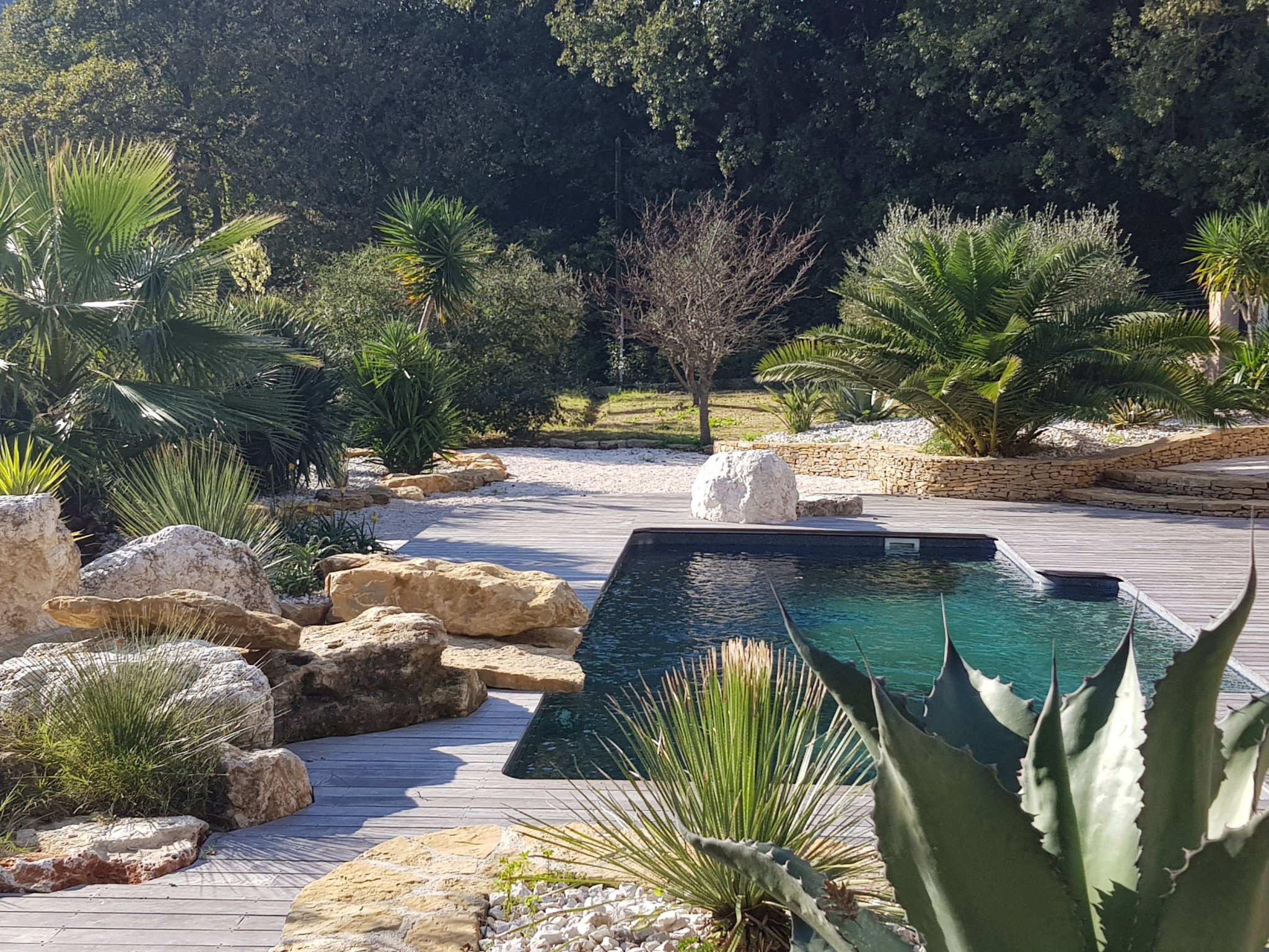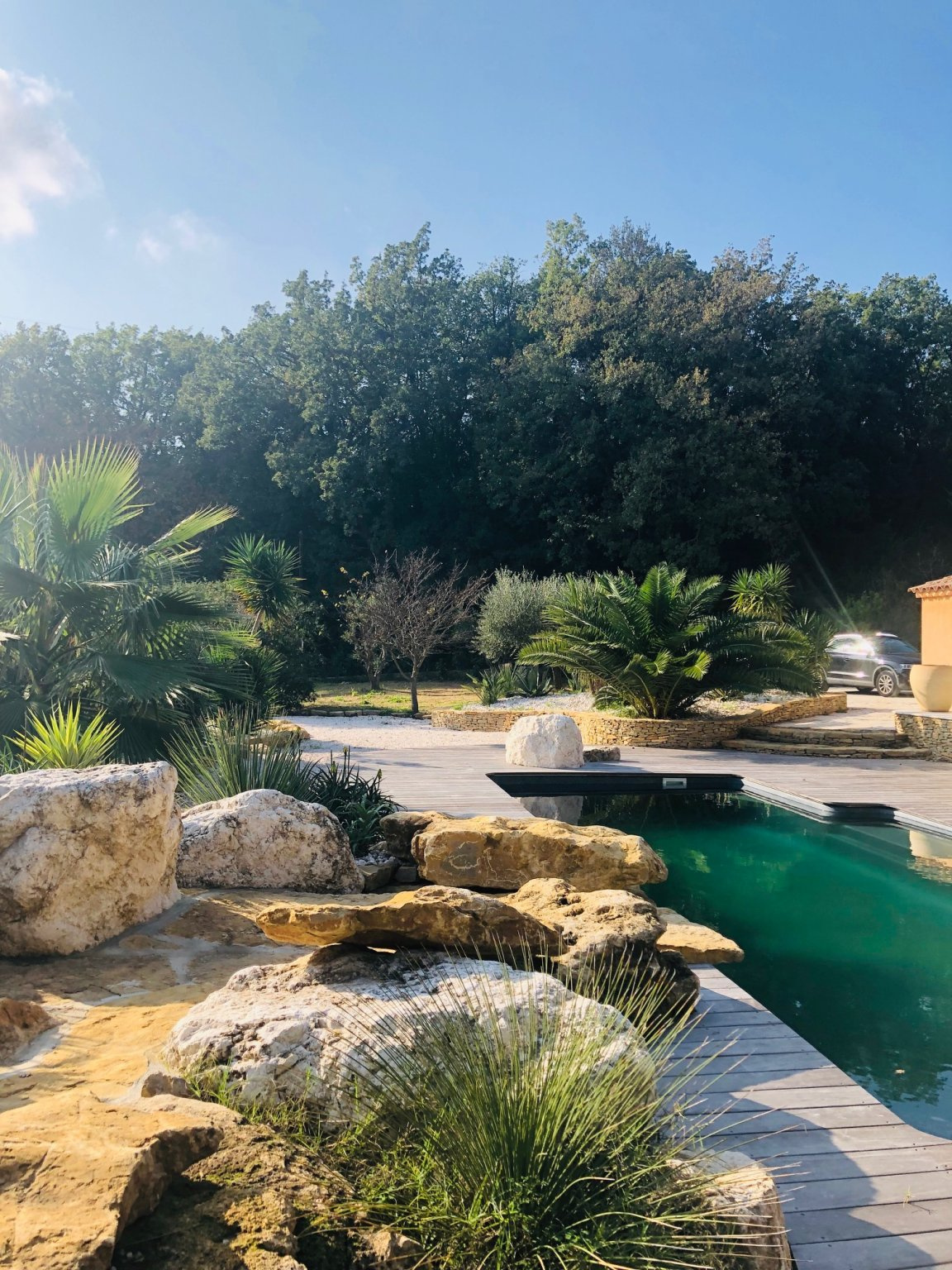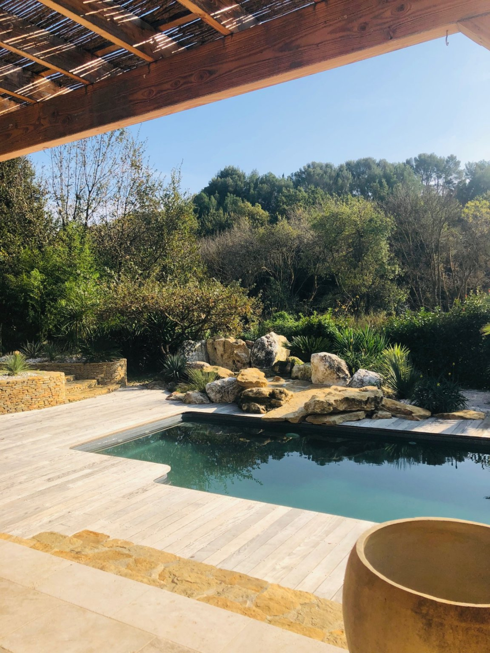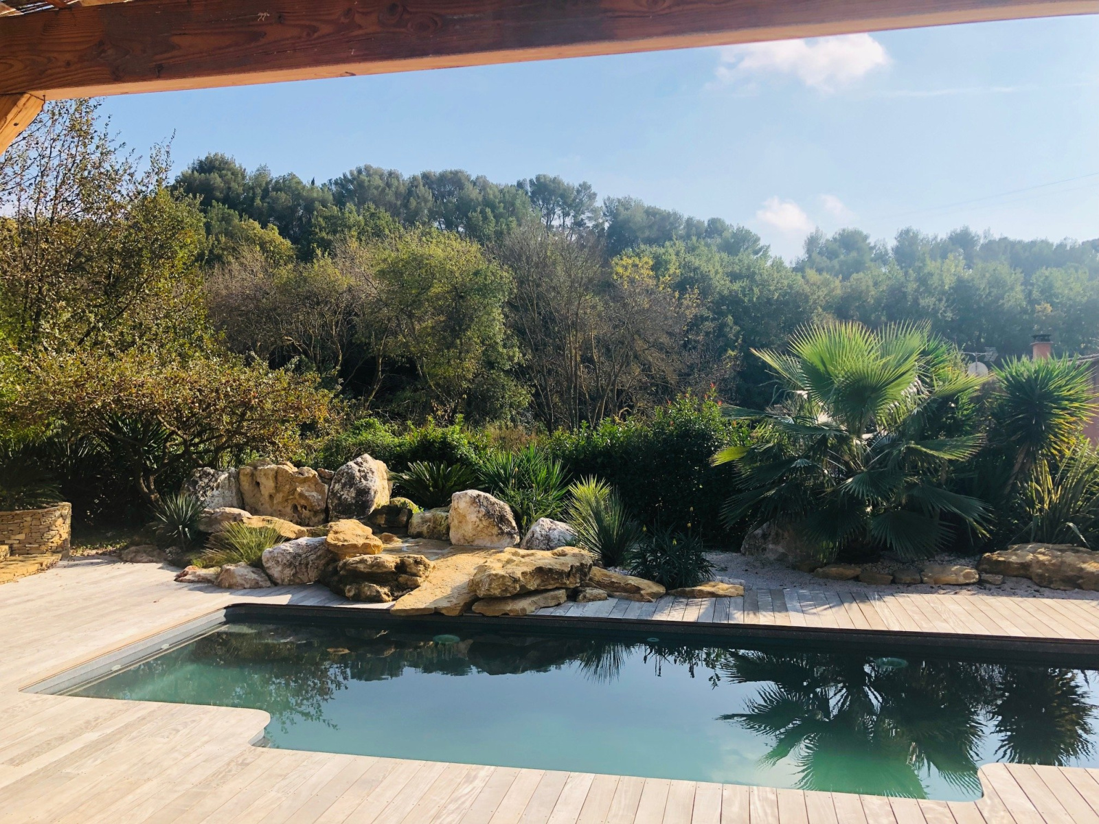 Grande terrasse exposée Sud Est donnant sur la très belle piscine 9x4.5 sans aucun vis-à-vis