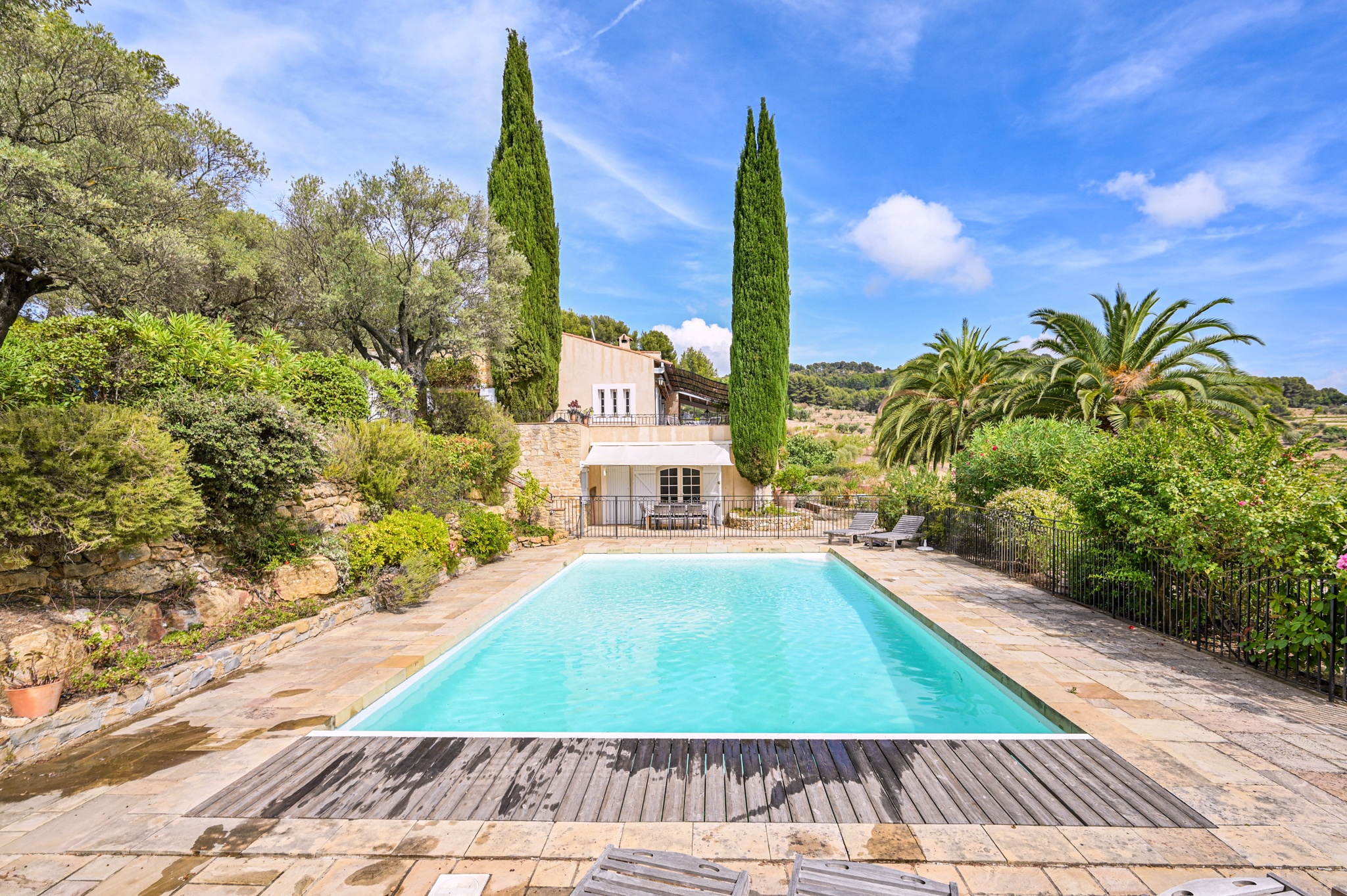 Vendu par SIGA IMMOVAR : cette propriété au coeur des vignes à 8 km de Bandol, avec beaucoup de caractère d'une superficie de 350 m² sur un terrain de 15000 m² exposé sud. La maison, 3 chambres avec salle d'eau, un salon de 60 m² et cheminée, cuisine, dans un style provençale avec terre cuite au sol, belle terrasse et vue dégagée sur les vignes. Au rdc, un appartement communiquant avec la maison, dont 3 chambres, une salle de bains, salon cuisine, et un petit salon pouvant servir de salle de jeux s'ouvrant sur la piscine. Une annexe avec 2 chambres et salle de bains. Idéal pour faire un gite. La piscine sécurisée par une rambarde en fer forgé est de 15 x 6 avec pompe à chaleur, couverture automatique, entouré d'un écrin de verdure. Terrain de boules, 60 oliviers et vignes bio. Classe energie : D. Honoraires agence inclus charge vendeur. Mandat n°3664