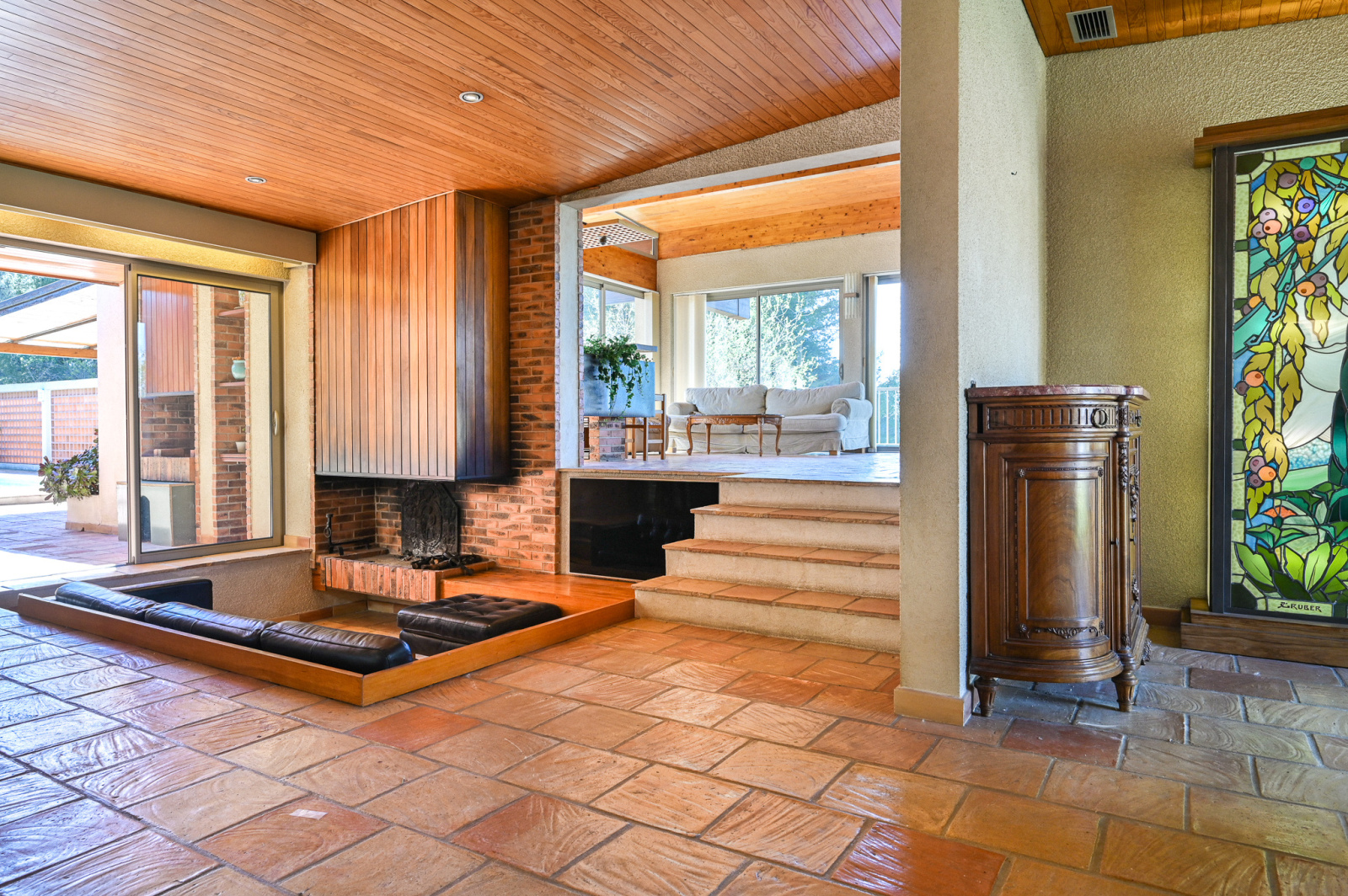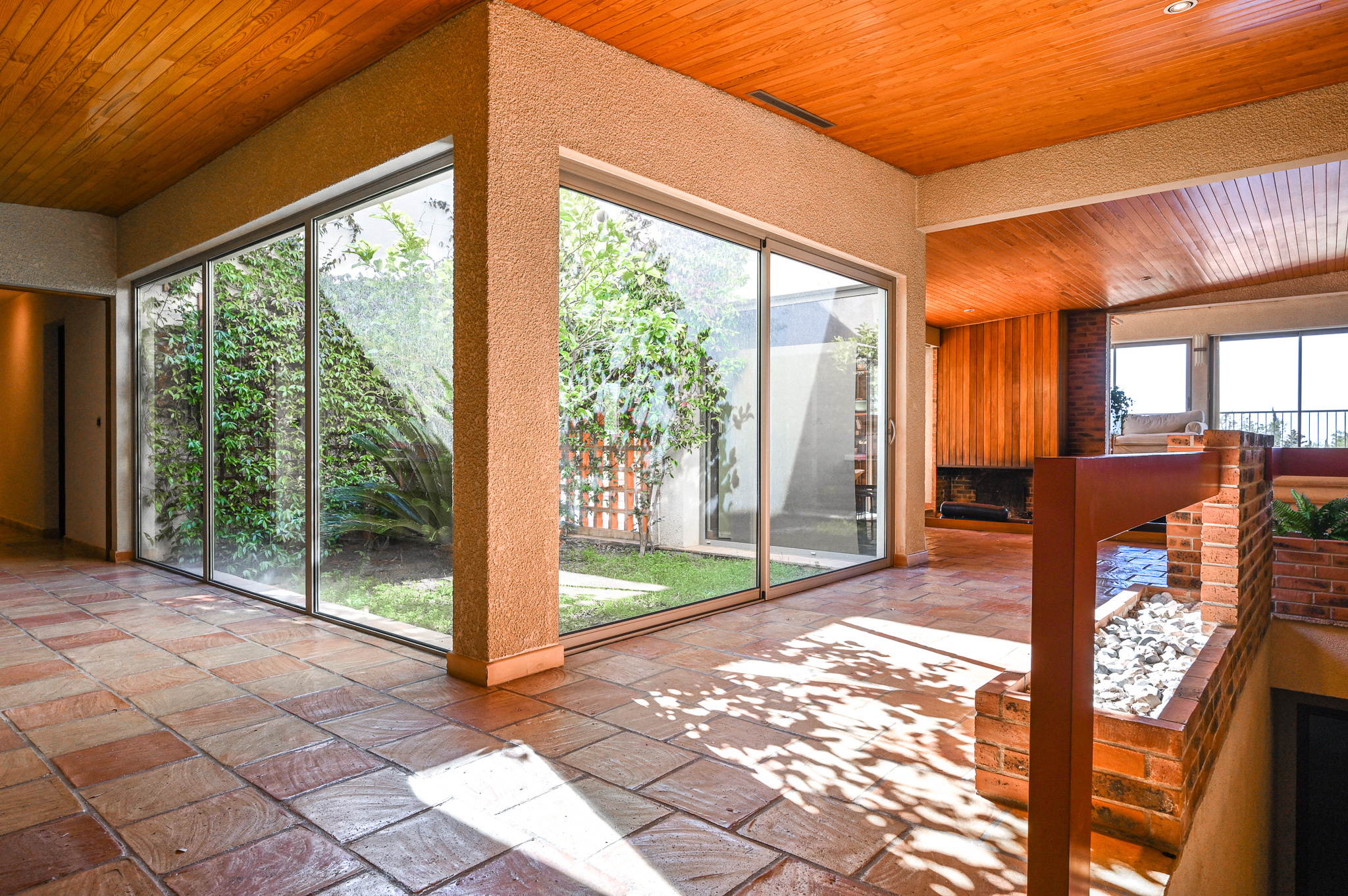 L'entrée se fait pas un hall et un patio de 43m2, suivie par une pièce à vivre de 100 m2. L'ensemble étant desservi par trois terrasses.