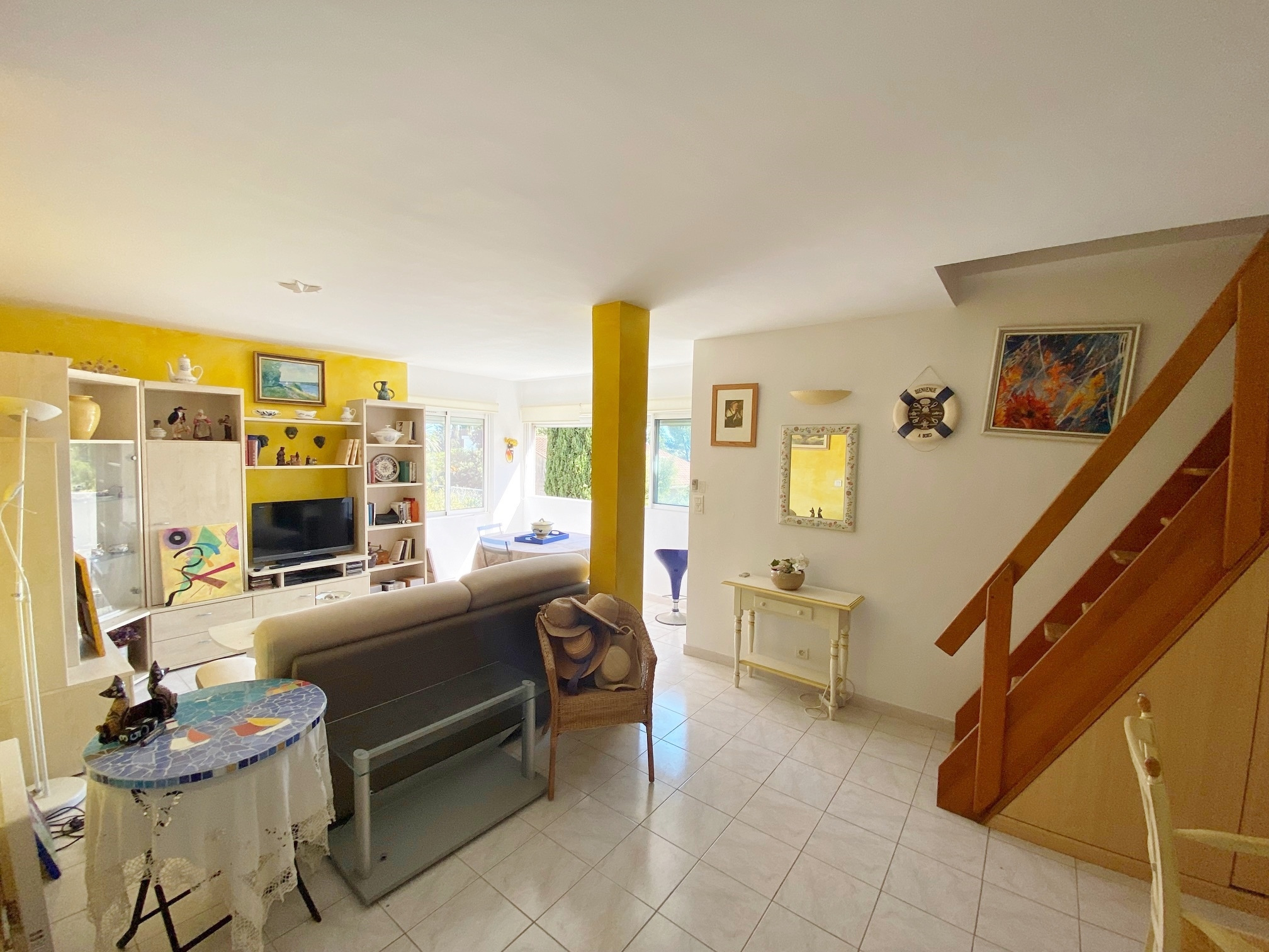 vendu par SIGA IMMOVAR : appartement dans un quartier calme à 10 min à pied de la plage. Cet appartement vous offre au premier niveau un séjour-cuisine Américaine de 33 m², une petite chambre et une salle d'eau. A l'étage une mezzanine de 23 m² avec une salle d'eau. La mezzanine donne accès à une terrasse d'environ 13 m² avec une belle vue mer. Résidence avec piscine. Place de parking et garage fermé. Classe energie D. Honoraires à charge vendeur. Lots principaux 64. Charges 147 € / mois. Mandat 3669