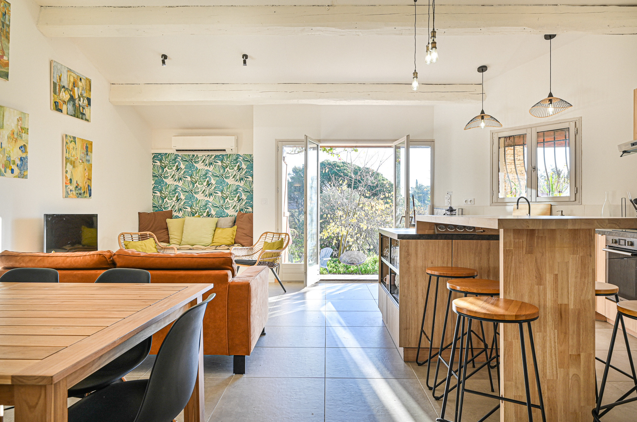 Vendue par IMMOVAR : jolie Maison de 120 m2 environ, de type 6, principalement de plain pied et une dépendance de 32 m2. Proche des plages et des commerces de Bandol, dans un secteur résidentiel et calme. La maison est rénovée avec goût dans un esprit contemporain. Très bel espace séjour-cuisine équipée ouverte. Elle se compose de 5 Chambres dont 4 au RDC incluant une suite. Une sdb, une salle d'eau. Au 1er étage, tropézienne bénéficiant d'une petie vue mer. Beau terrain plat et piscinable de 700m2, . A découvrir rapidement! Mandat 31, Prix Honoraires d'agence inclus à la charge du vendeur. Classe énergie E.