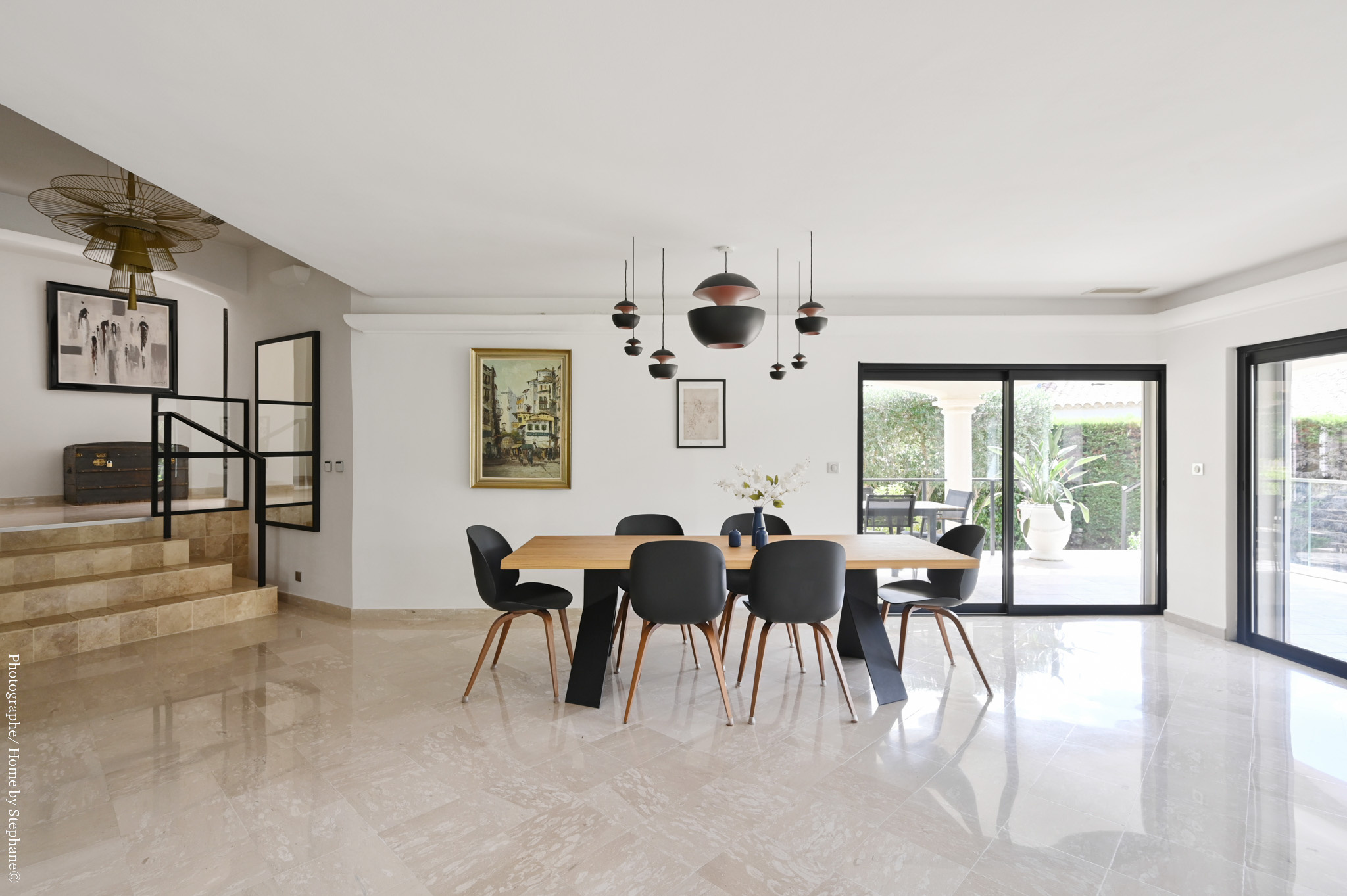 La terrasse, idéale pour vos moments de détente, surplombe une somptueuse piscine à débordement avec une vue dégagée sur la campagne environnante.